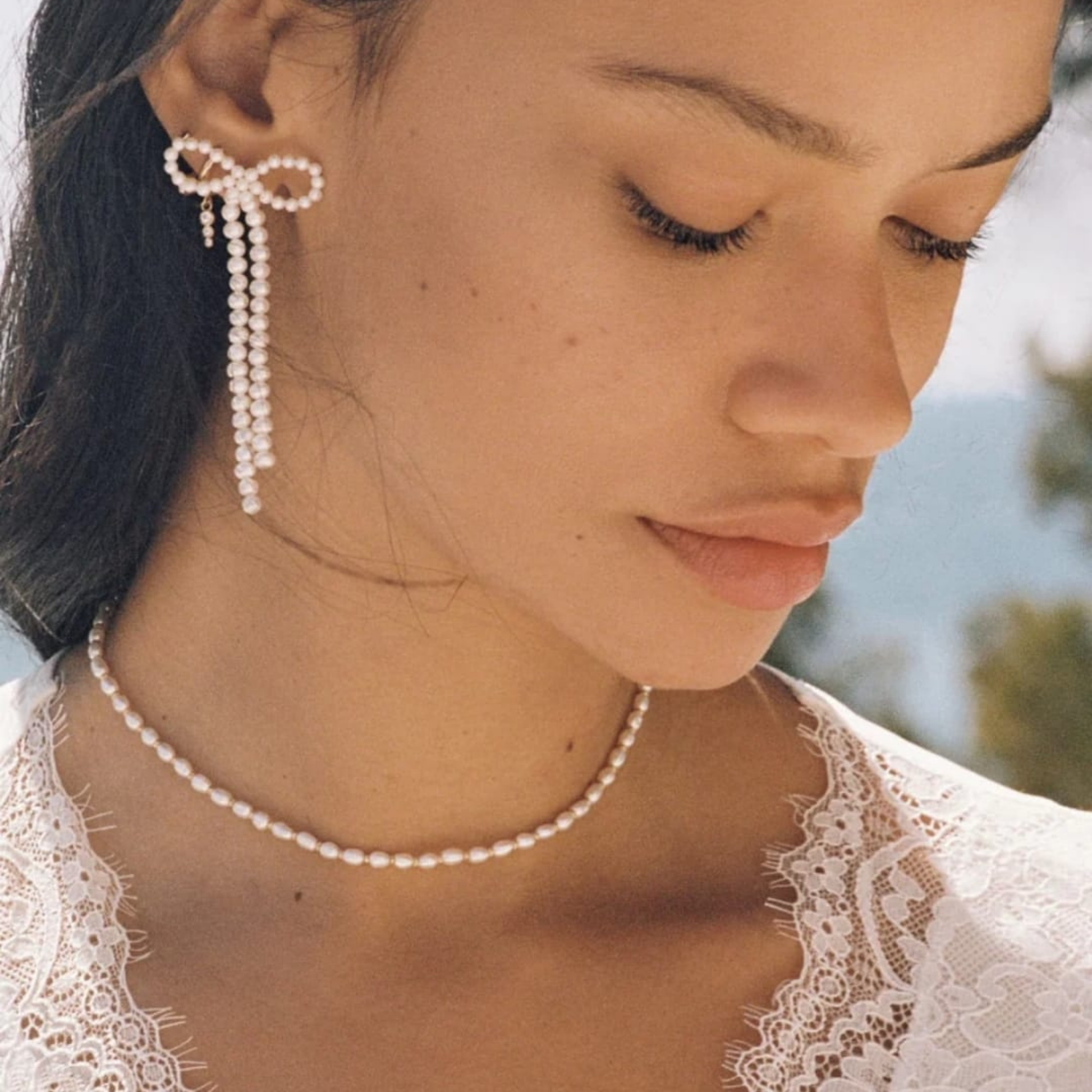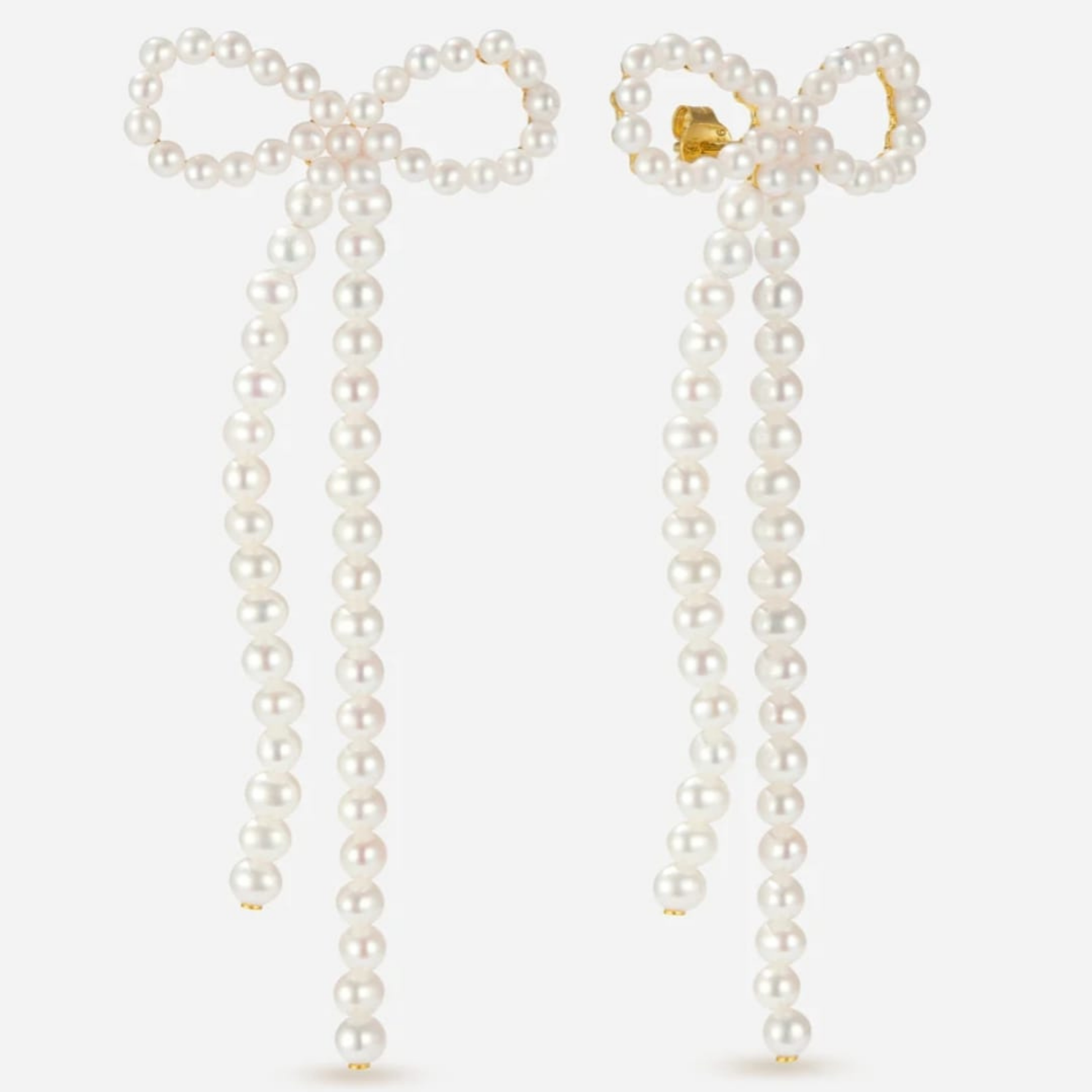 Sparkle Bow Earrings, Slouchy Pearl Bow Earrings,Pearl Bow Earrings, Christmas Gif